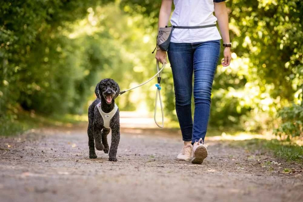 De nylon heupriem is uitgerust met een lichte aluminium gesp en heeft een lengte van 110 cm. Je kunt het zakje comfortabel om je heup dragen terwijl je je handen vrij hebt om je hond te trainen.