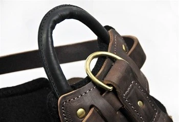 De borstplaat is gemaakt van dik leer. De hardware wordt speciaal in Zwitserland gemaakt en het leer komt uit de beste leerlooierijen in het Verenigd Koninkrijk. Het is volnerf leer, dat betekent dat het leer niet wordt geschuurd, waardoor de nerf en het natuurlijke beeld intact blijft.