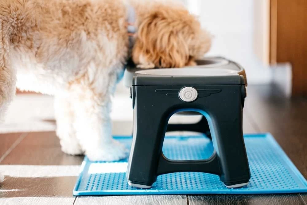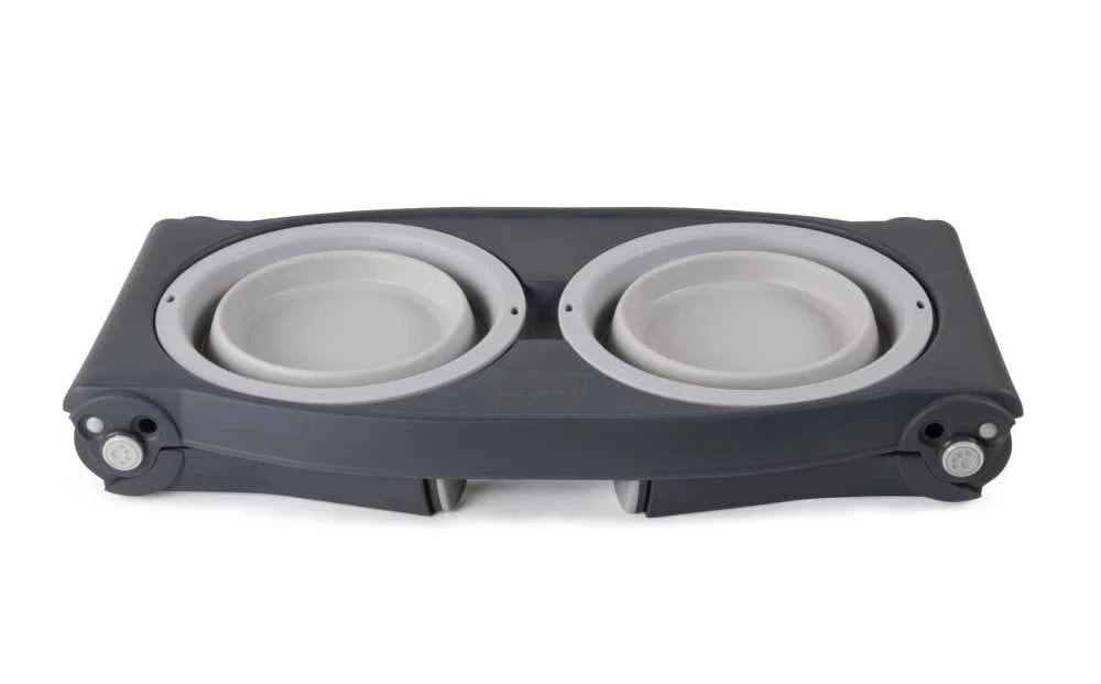 Deze verhoogde lichtgrijze dubbele drink- en voerbak is in hoogte verstelbaar. U kunt de hoogte instellen vanaf 20 tot 33 cm. Dat is erg praktisch: de bakjes groeien mee met uw pup ! Gebruik van een verhoogde bak zorgt voor minder spanning op de gewrichten van de hond omdat de hond niet scheef hoeft te gaan staan bij het drinken of eten.