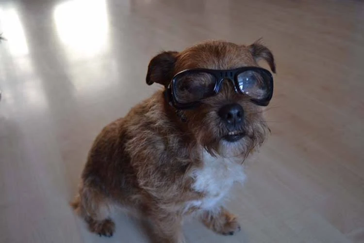 Deze zwarte hondenzonnebril is voorzien van normale glazen en wordt geleverd inclusief een opbergzakje.