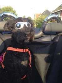 Deze hondenzonnebril voor honden is gemaakt van stevig kunststof. De zonnebril is perfect te gebruiken als u de hond bijvoorbeeld meeneemt in de cabrio, op de fiets of op de motor. De bril is aan de zijkanten voorzien van ventilatieopeningen waardoor de zonnebril niet kan beslaan.