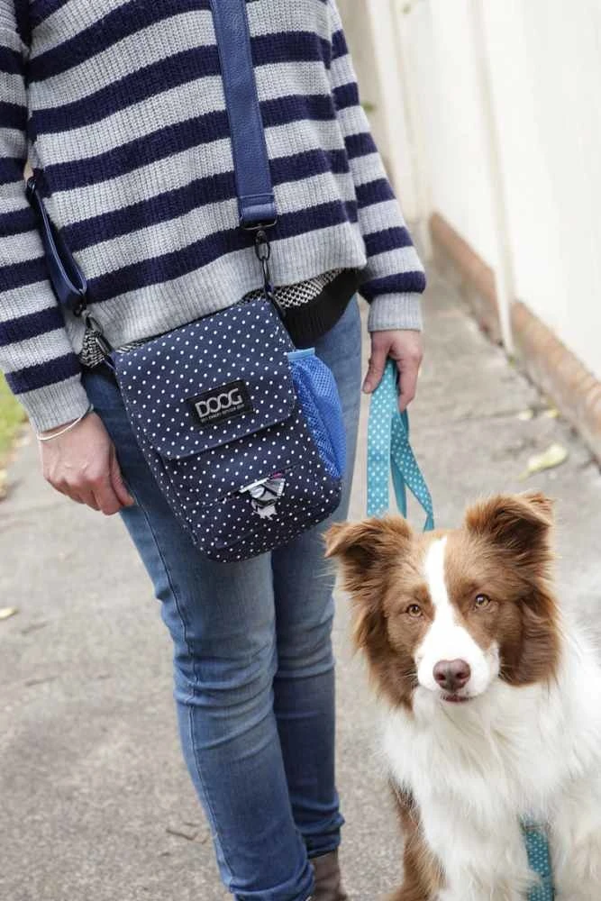 Een stijlvolle cross body hondenuitlaattas die er geweldig uitziet en die ervoor zorgt dat u de handen vrij heeft tijdens het wandelen met de hond.