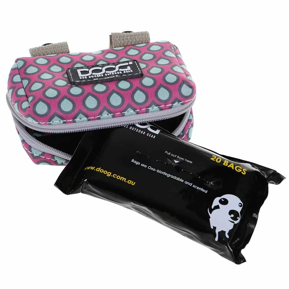 Voor de baasjes die niet graag een tas of riem dragen tijdens het uitlaten van de hond is de nieuwe DOOG Walkie Pouch het antwoord. Dit handige, lichtgewicht etui wordt geleverd met 20 poepzakjes die als tissues uit een kleine opening aan de voorkant worden getrokken.