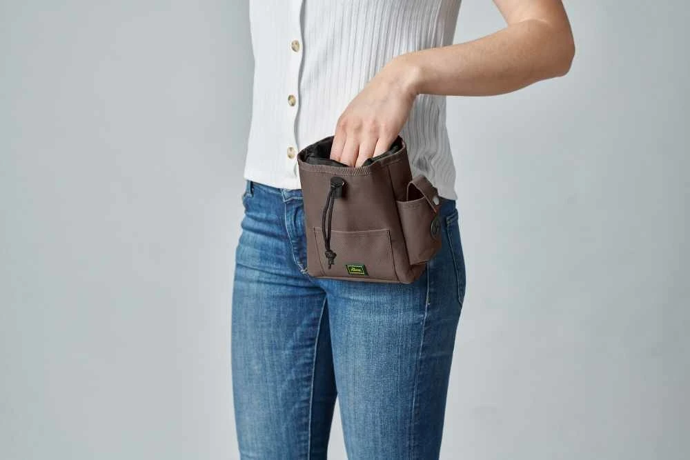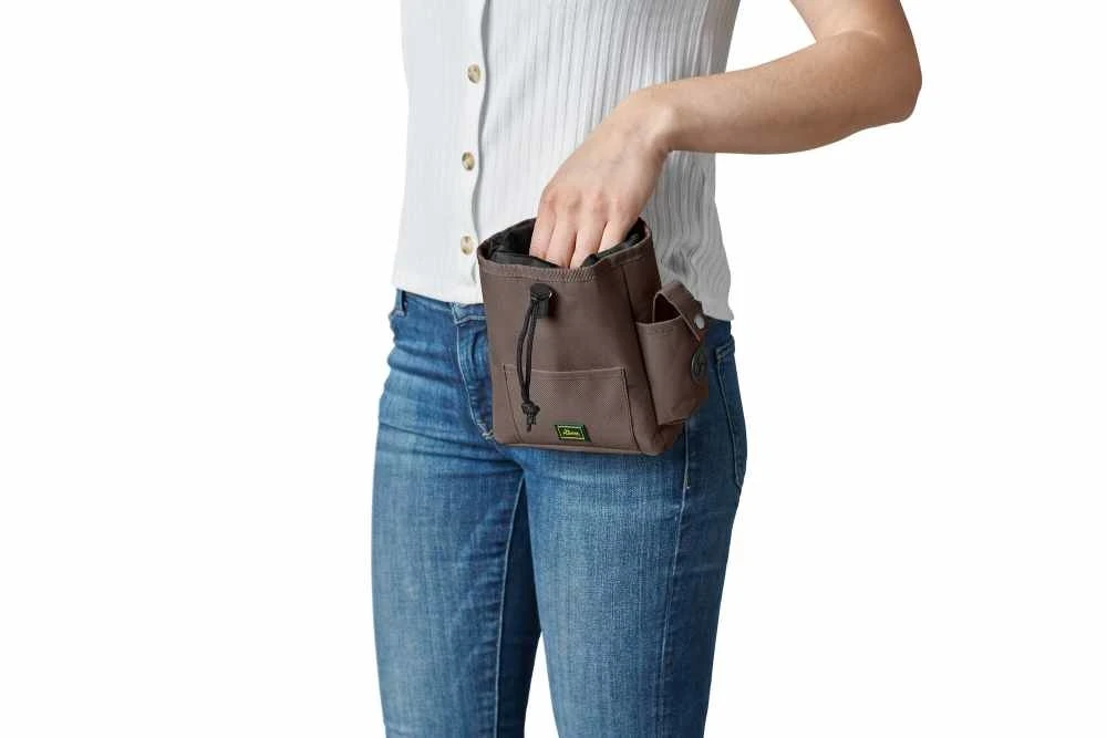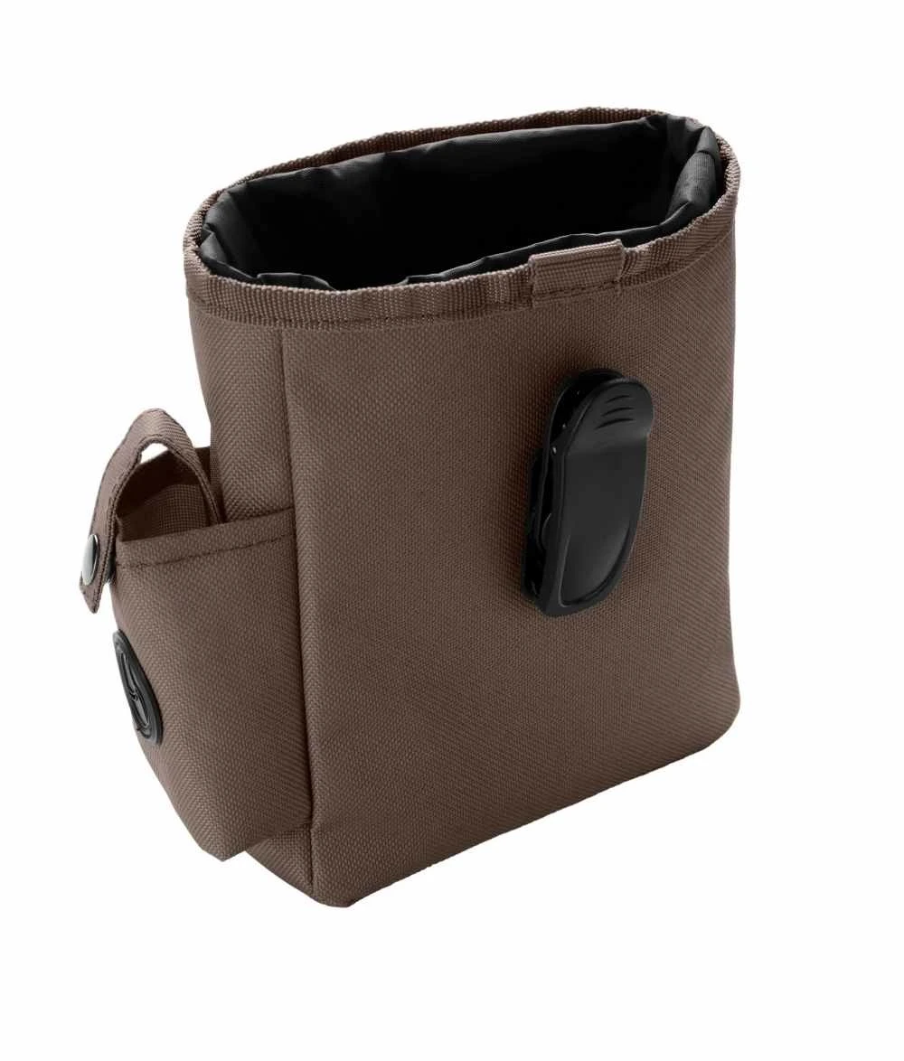 Dit beloningszakje is gemakkelijk te bevestigen aan een broekriem met de clip aan de achterzijde. Zowel de binnenzijde als de buitenkant zijn gemaakt van gerecycled polyester. De binnenzijde kan gewassen worden. Het zakje is erg goed geschikt om snacks in op te bergen. U opent en sluit het zakje met behulp van een koord. Aan de zijkant vindt u een geïntegreerde poepzakhouder. Aan de voorkant is er nog een opbergzakje waarin u bijvoorbeeld een clicker kunt opbergen.