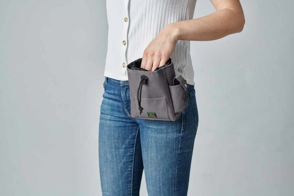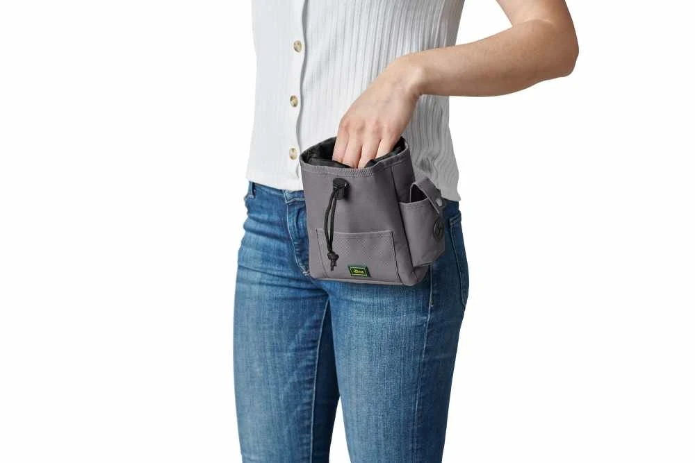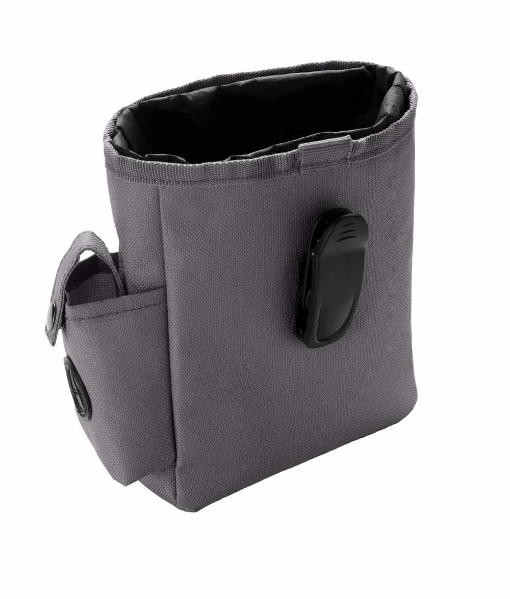 Dit beloningszakje is gemakkelijk te bevestigen aan een broekriem met de clip aan de achterzijde. Zowel de binnenzijde als de buitenkant zijn gemaakt van gerecycled polyester. De binnenzijde kan gewassen worden. Het zakje is erg goed geschikt om snacks in op te bergen. U opent en sluit het zakje met behulp van een koord. Aan de zijkant vindt u een geïntegreerde poepzakhouder. Aan de voorkant is er nog een opbergzakje waarin u bijvoorbeeld een clicker kunt opbergen.