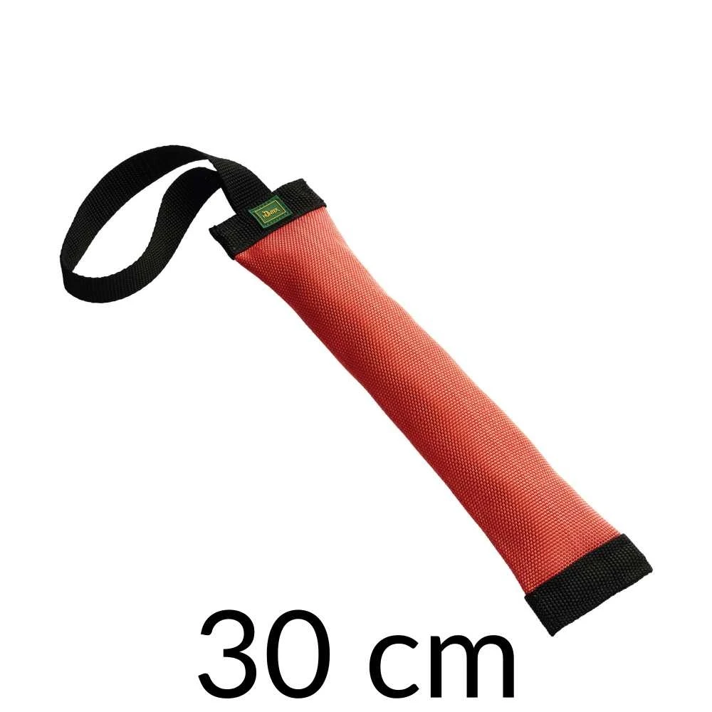 Een rode dummy voor gebruik bij apporteertrainingen. De dummy is gemaakt van sterk en robuust nylon en is voorzien van een polsbandje.