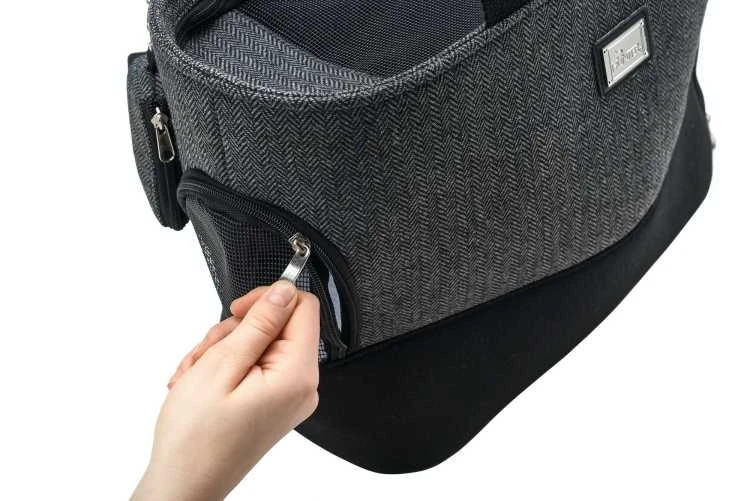 De mesh-inzetstukken in de draagtas zorgen voor voldoende toevoer van verse lucht. Uw hond kan in de tas klimmen vanaf de bovenkant of de zijkant. Bovendien heeft de tas een losse poepzakhouder.