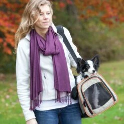 De tas is geschikt voor kleine honden en katten tot een gewicht van 7 kg.