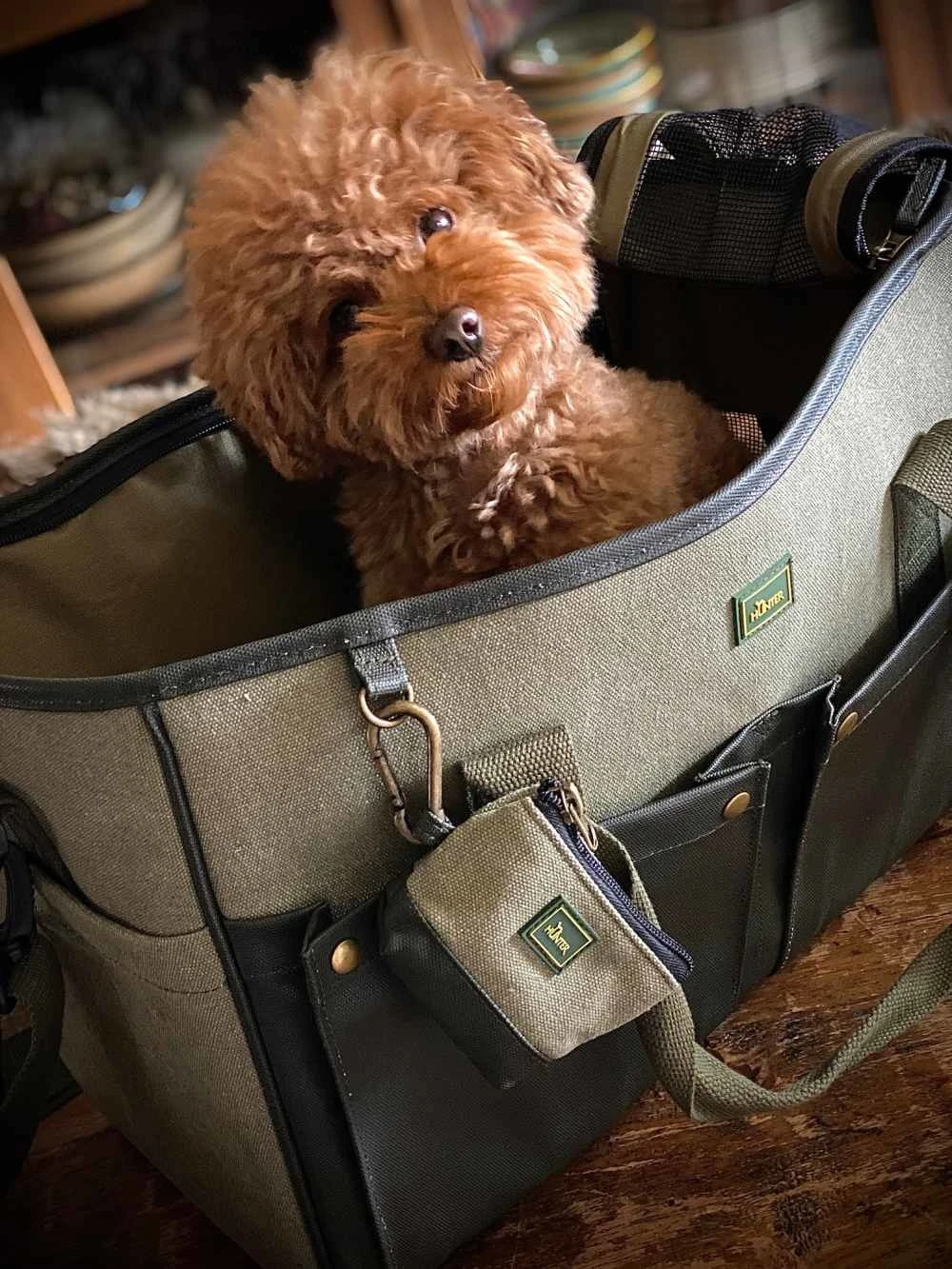 Deze robuuste draagtas is geschikt voor kleine honden en katten tot ca. 7 kg. De draagtas is gemaakt van eersteklas stijlvol antislip katoenen canvas. De hondendraagtas heeft praktische details zoals een apart draagtas voor hondenpoepzakjes en royale buitenvakken. Uw favoriete dier kunt u van bovenaf in de tas stoppen en op de knuffelige dekentje van imitatie lamsleer voelt hij zich meteen thuis. U kunt ervoor kiezen om de tas in de hand te dragen of nonchalant over je schouder te slingeren.