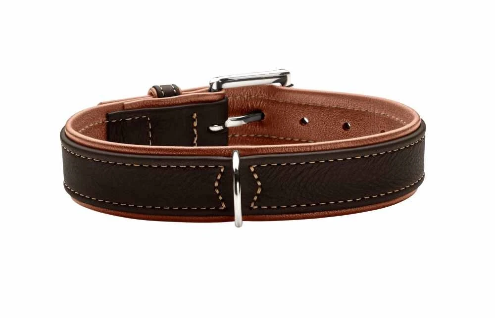 Omdat alleen het beste goed genoeg is voor de geliefde hond, wordt dubbelgevouwen premium leer gebruikt voor het boven- en onderleer van deze prachtige hondenhalsband. Het vouwen of wikkelen bij leerverwerking wordt buigen genoemd, wat zorgt voor bijzonder zachte randen en maximaal draagcomfort. De halsband is gemaakt van heel bijzonder rundleer. Voor de productie van het chroomvrije premium leer dat bijzonder zacht aanvoelt, worden alleen huiden van Zuid-Duitse oorsprong gebruikt. Ook vindt de verwerking plaats in lokale leerlooierijen, zodat de transportroutes kort gehouden kunnen worden omwille van het milieu.