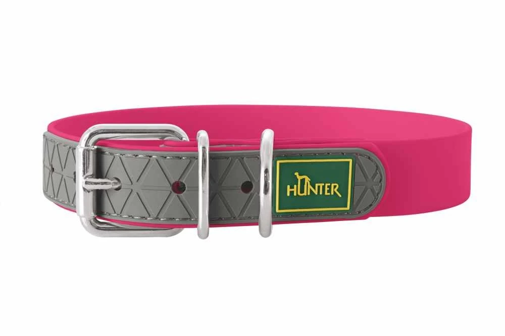 Deze strakke halsband is gemaakt van stevig kunststof en is door de strakke vorm en de grote keuze aan kleuren geschikt voor elke smaak. Het onderhoudsvriendelijke materiaal maakt deze mooie halsband absoluut geschikt voor dagelijks gebruik. Het speciaal door Hunter ontwikkelde kunststof is bestand tegen scheuren, duurzaam en waterbestendig. U kunt de halsband gewoon met water afspoelen als de halsband vies is geworden.
