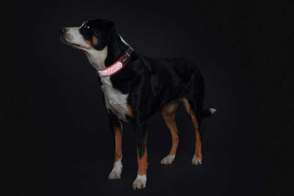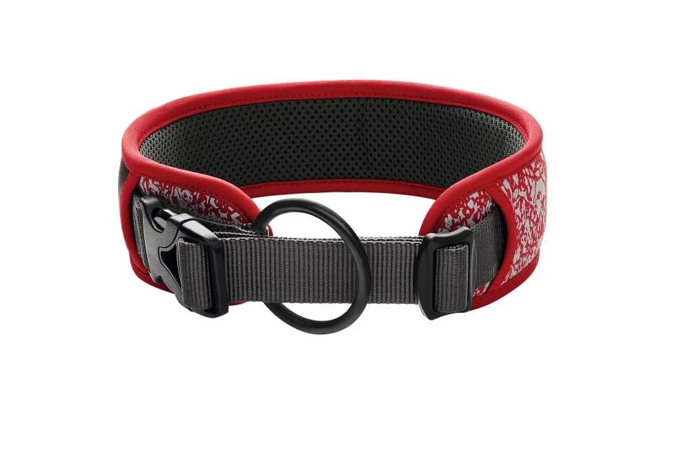 Dit is een comfortabele hondenhalsband die is gemaakt van robuust rood nylon. De halsband is gevoerd met zacht ademend mesh materiaal en neopreen zodat het zeer aangenaam is voor uw hond.
