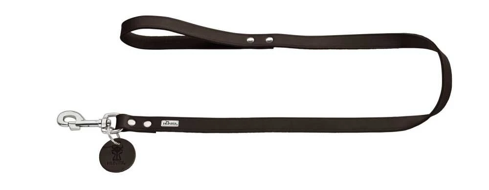 Deze donkerbruine hondenriem is gemaakt van rundleer. Dankzij een royale toevoeging van olie en een natuurlijk verfproces, is de riem ook bestand tegen zware belasting. Hierdoor is deze hondenriem ook goed geschikt is voor hondensporten. De riem heeft een handvat en een musketonhaak.