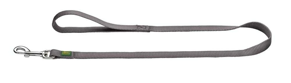 Dit is een hondenriem die is gemaakt van eenvoudig te reinigen en slijtvast grijs nylon. De riem kan worden gebruikt in elk weertype. De nylon stof waarvan de riem is gemaakt, is duurzaam, maar tegelijkertijd flexibel en aangenaam om vast te houden.
