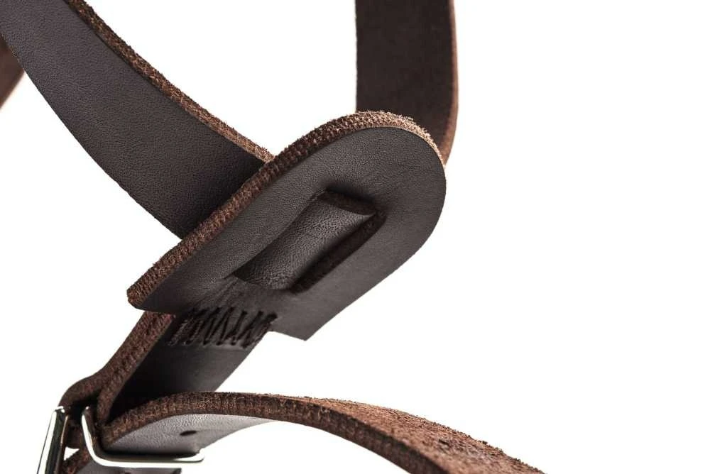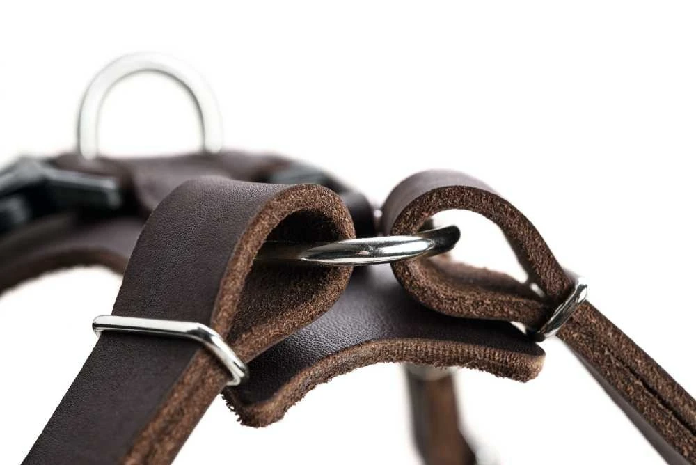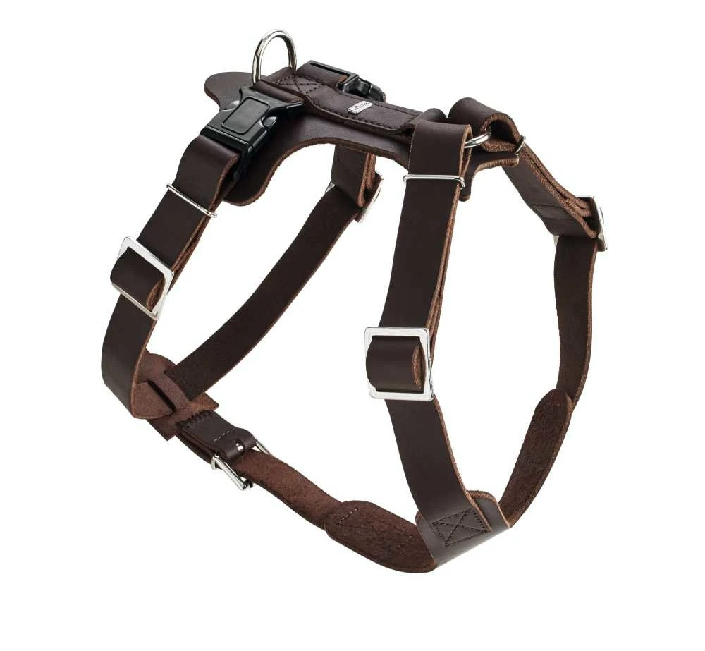 Dit is een comfortabel en functioneel bruin hondentuig dat is gemaakt van zacht koeienleer. Het Y tuig heeft een geweldige pasvorm, Het hondentuig biedt uw hond veel vrijheid in de oksels door de verlengde borstriem. U kunt het tuig op vijf plaatsen verstellen.