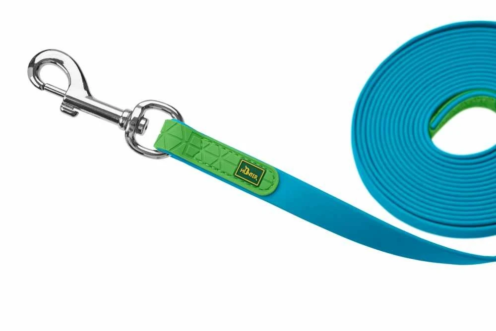 Aan een jachtlijn worden hogere eisen gesteld dan aan een standaard hondenriem. Deze jachtlijn is speciaal ontwikkeld voor de jacht en voor hondensporten. Deze waterafstotende riem is verkrijgbaar in vier verschillende lengtes die uw hond veel ruimte geven tijdens het werken of trainen, maar waarmee u toch de controle behoudt. De jachtlijn heeft geen handlus en is dus ideaal voor het volgen. Bovendien helpt de speciale vorm van de lijn om te voorkomen dat de hond verstrikt raakt of vast komt te zitten. Ook het materiaal waarvan de jachtlijn is gemaakt speelt een belangrijke rol. De innovatieve mix van kunststoffen is duurzaam en glad. Dit zorgt ervoor dat de lijn zelden blijft haken en heel gemakkelijk schoon te maken is. Vuil kan gemakkelijk worden afgewassen.