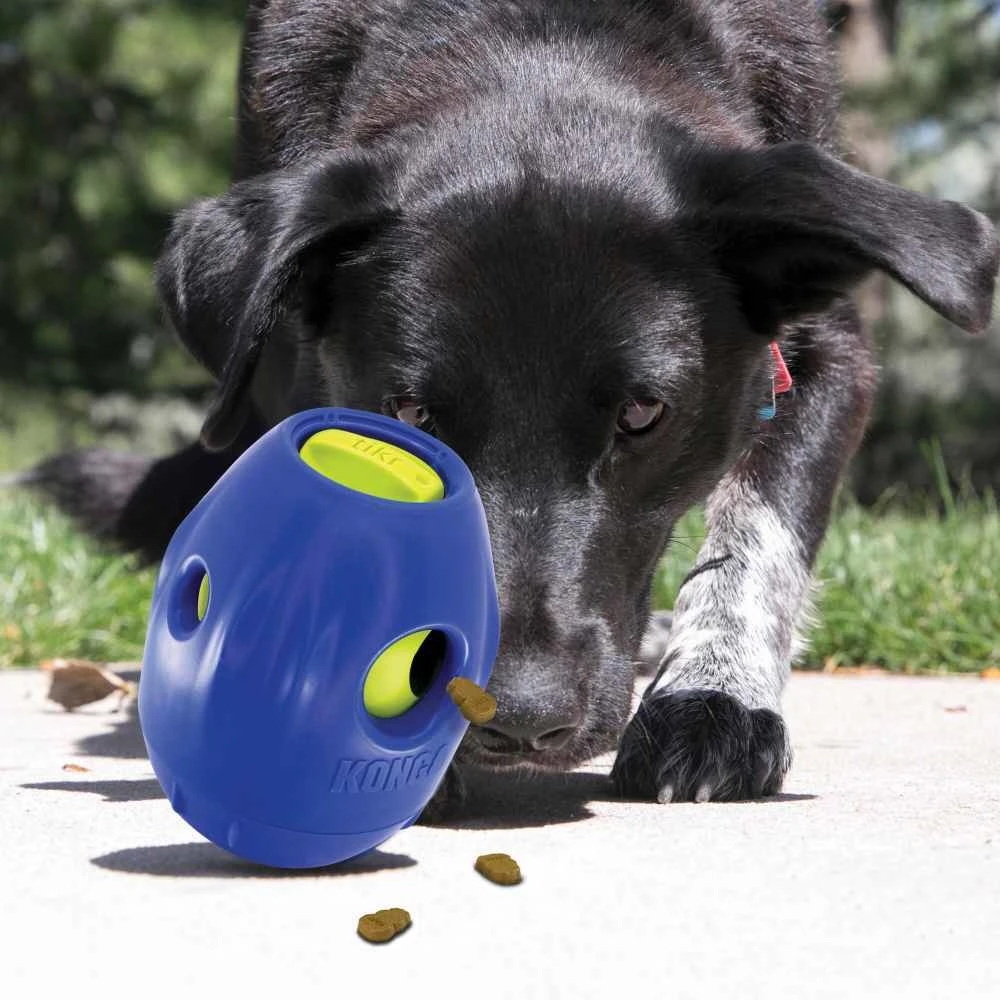 De KONG® Tikr werkt als een timer – eenvoudig, betrouwbaar en zonder batterij. De innovatieve puzzel van KONG® vult u met snacks of droogvoer. Deze worden voor een periode van maximaal 45 minuten voor de trouwe viervoeter afgegeven. Een tip voor “gevorderde” viervoeters: snacks van verschillende groottes maken het eetspel nog gevarieerder en brengen het plezier naar een heel nieuw niveau.