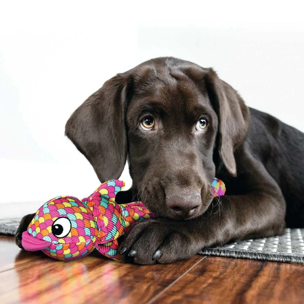 Dit hondenspeeltje, in de vorm van een vis met een lange staart, is geschikt voor apporteerspelletjes en kan natuurlijk ook als een knuffel gebruikt worden. Het is gemaakt van stevig nylon en de naden zijn versterkt. In het speeltje zitten twee ballen met een pieper. Maat S wordt geleverd in de kleur roze, de maat L en de maat XL in de kleur blauw.