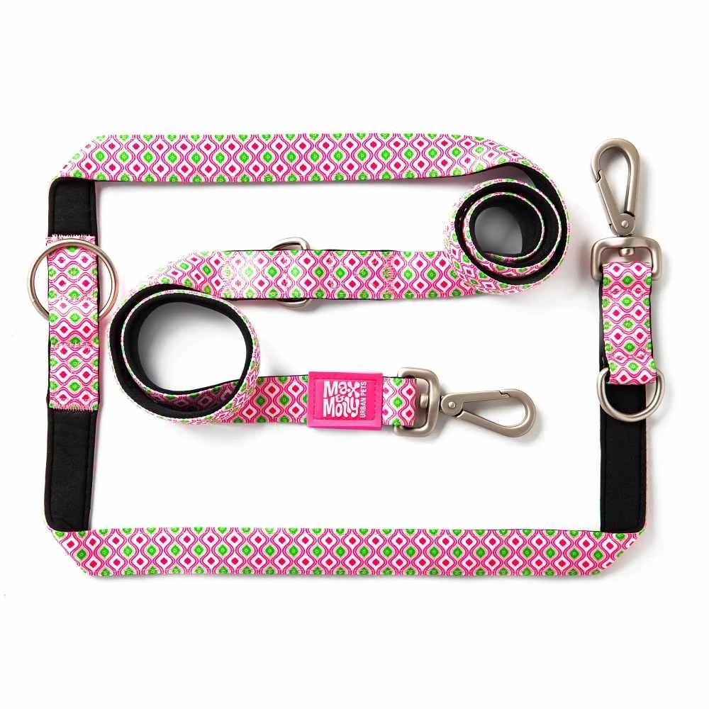 De multifunctionele riem kan maar liefst op 7 verschillende manieren gebruikt worden. Zo is de lengte verstelbaar door de handige ringen welke bevestigd zijn aan de lijn. Dat maakt het wandelen nog leuker en dat allemaal met één looplijn!