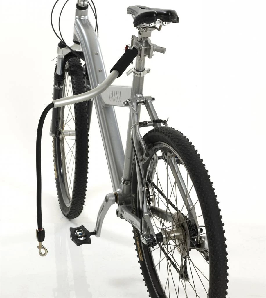 Wilt u uw hond mee laten rennen terwijl uw fietst ? Dan is deze aanlijnriem een uitstekende keuze. De cycleash staat bekend om de uitstekende kwaliteit en het ontwerp garandeert dat uw hond veilig mee kan lopen. De riem bevestigt u middels een ergonomisch gebogen stang aan de fiets. Door gebruik van deze Cycleash behoudt u met beide honden de controle over de fiets, dit is de beste en meeste veilige manier om met uw hond te gaan fietsen.