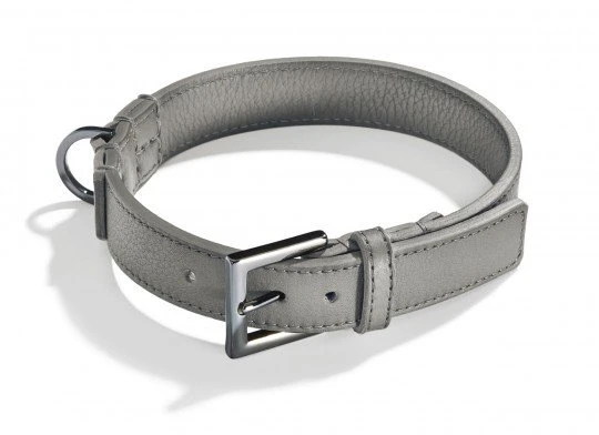 Deze elegante en tijdloze grijze hondenhalsband wordt geheel met de hand gemaakt in het eigen atelier van Schröder. De halsband is gemaakt van traditioneel sterk leer en gevoerd met zacht kalfsleer, eveneens uit de eigen leerlooierij. Door de eersteklas materialen voelt de halsband bijzonder zacht aan. De accessoires zoals de D ring en de gesp zijn uitgevoerd in zwart metallic, en deze geven de halsband een zeer stijlvol uiterlijk.