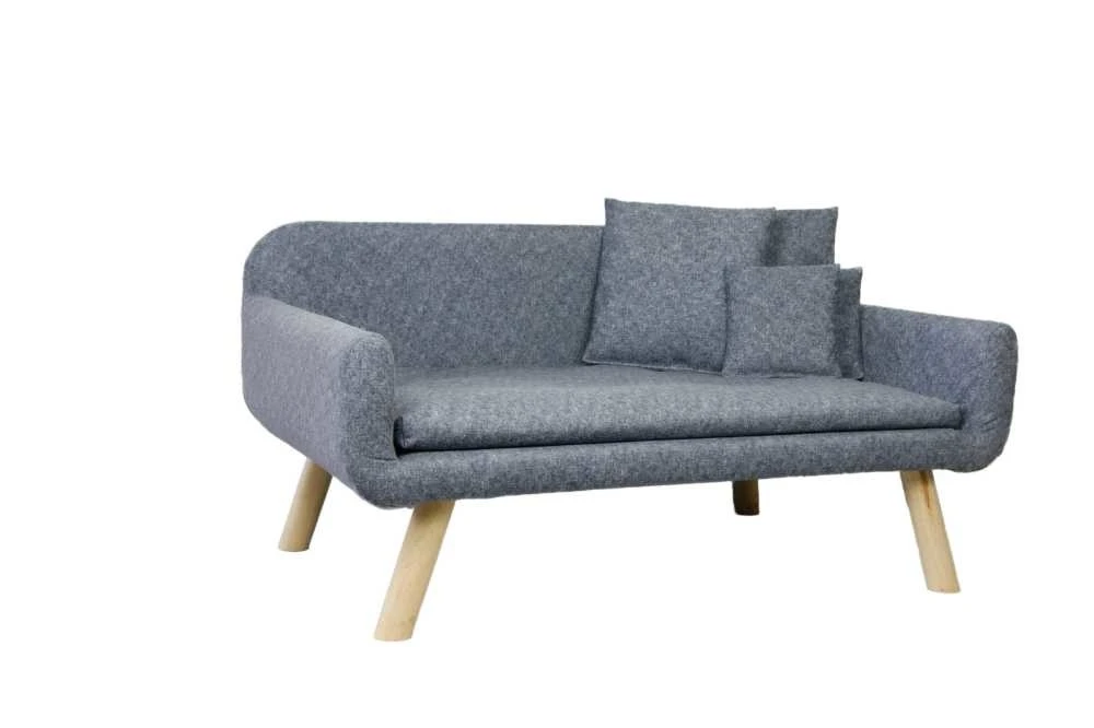 Deze grijze hondensofa is uitgevoerd in polyester van goede kwaliteit. De mand is voorzien van drie losse kussentjes. De hondenmand heeft een zachte vulling zodat uw hond er heerlijk op zal liggen. De moderne vorm zal in vrijwel ieder interieur een echte blikvanger zijn. Dit product wordt volledig in Duitsland geproduceerd.