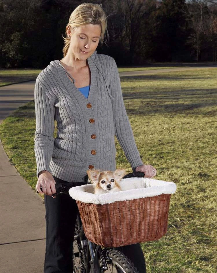 De fietsmand is geheel gevoerd met imitatie schapenvacht, de voering is gemakkelijk uit de mand te halen om deze te reinigen. De mand wordt compleet geleverd met een afneembaar zonnescherm, waarmee de hond ook op zonnige dagen comfortabel in de mand kan zitten.
