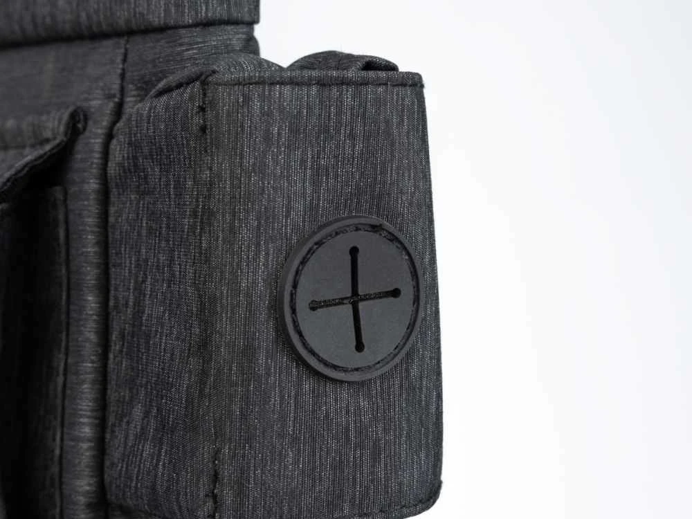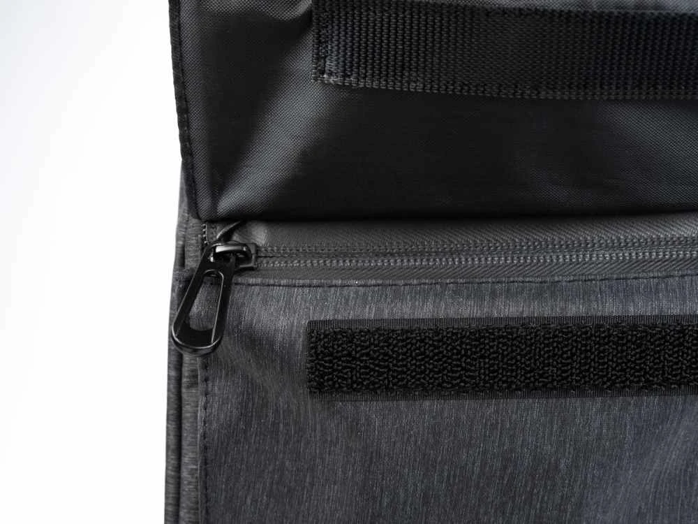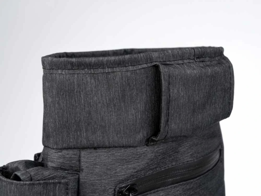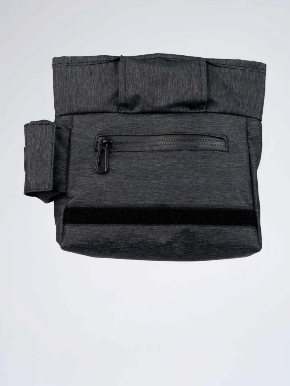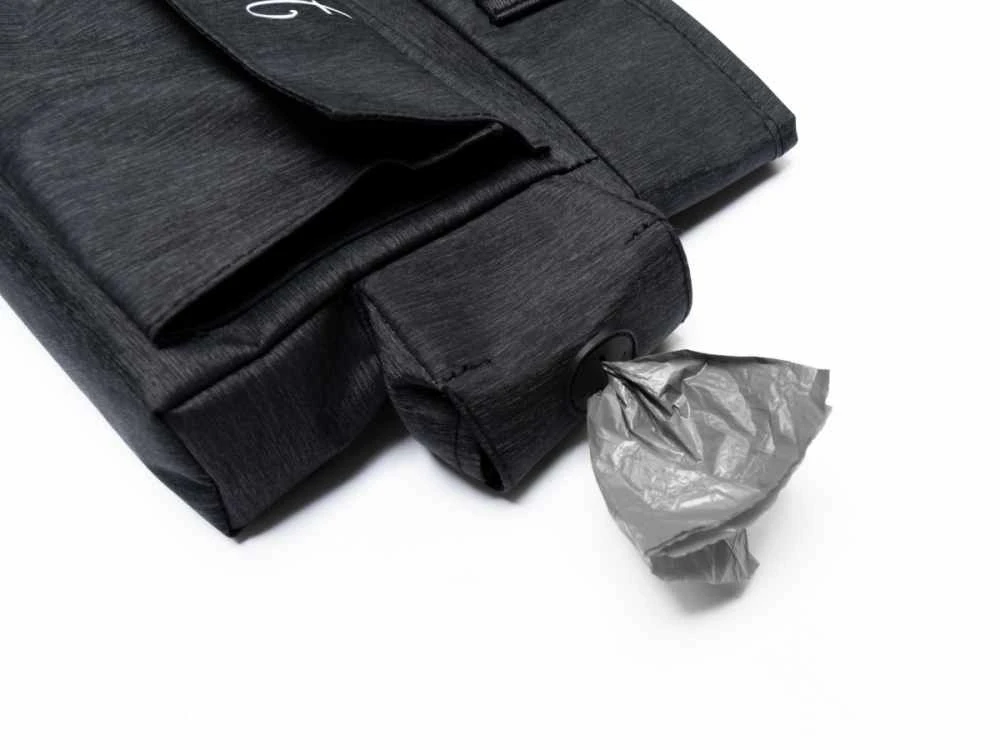 Aan de voorzijde vindt u nog een opbergvakje waar u bijvoorbeeld een telefoon kunt opbergen. Aan de zijkant heeft het tasje nog een poepzakhouder met een dispenser. Aan de achterzijde vindt u nog een opbergvakje met een ritssluiting.