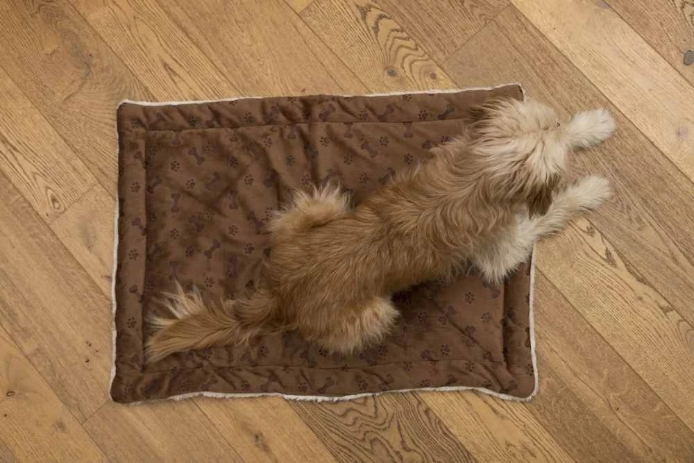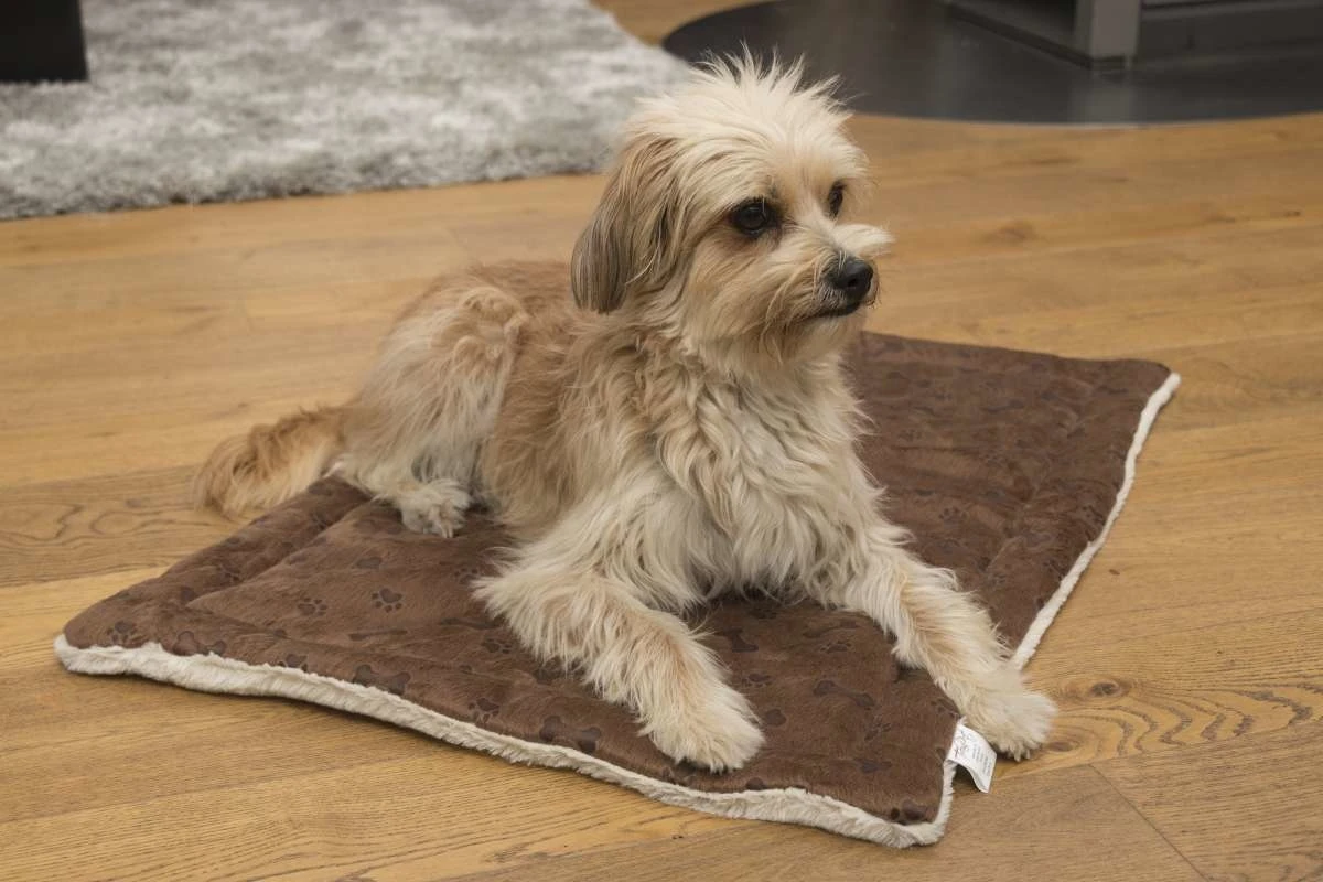 Uw hond zal van deze hondendeken genieten ! De deken is gemaakt van super zacht fleece, dus extra lekker warm en zacht voor de hond. Het leuke aan dit model is dat u de deken aan twee kanten kunt gebruiken voor de afwisseling. De ene kant is effen beige, de andere kant is bruin met hondenpootjes en botjes.